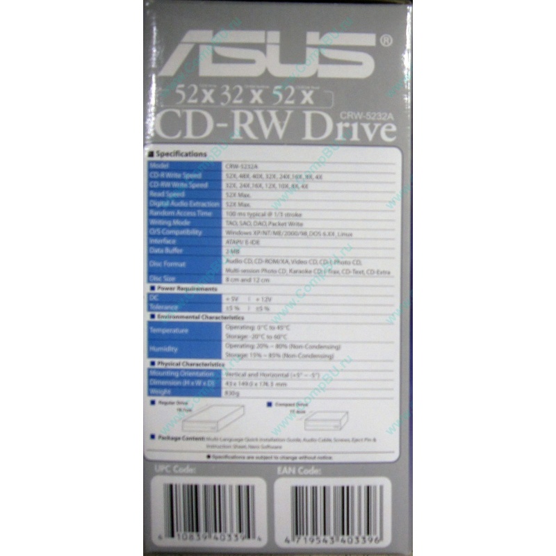 НОВЫЙ внутренний CD-RW привод ASUS CRW5232A