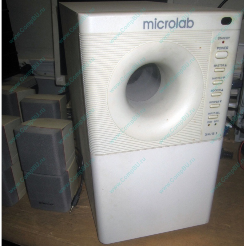 Шикарные мощные аудиоколонки с сабвуфером Microlab X4 5.1. Суммарная мощность всех колонок 210W! Диапазон воспроизводимых частот 45-20000 Гц. Цвет колонок белый. Корпус сабвуфера сделан из дерева.
