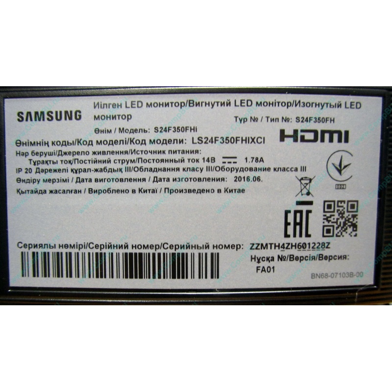 Широкоформатный монитор 23.5" Samsung S24F350FHI 1920x1080 (16:9). Есть царапина ~8 мм в нижнем левом квадранте.